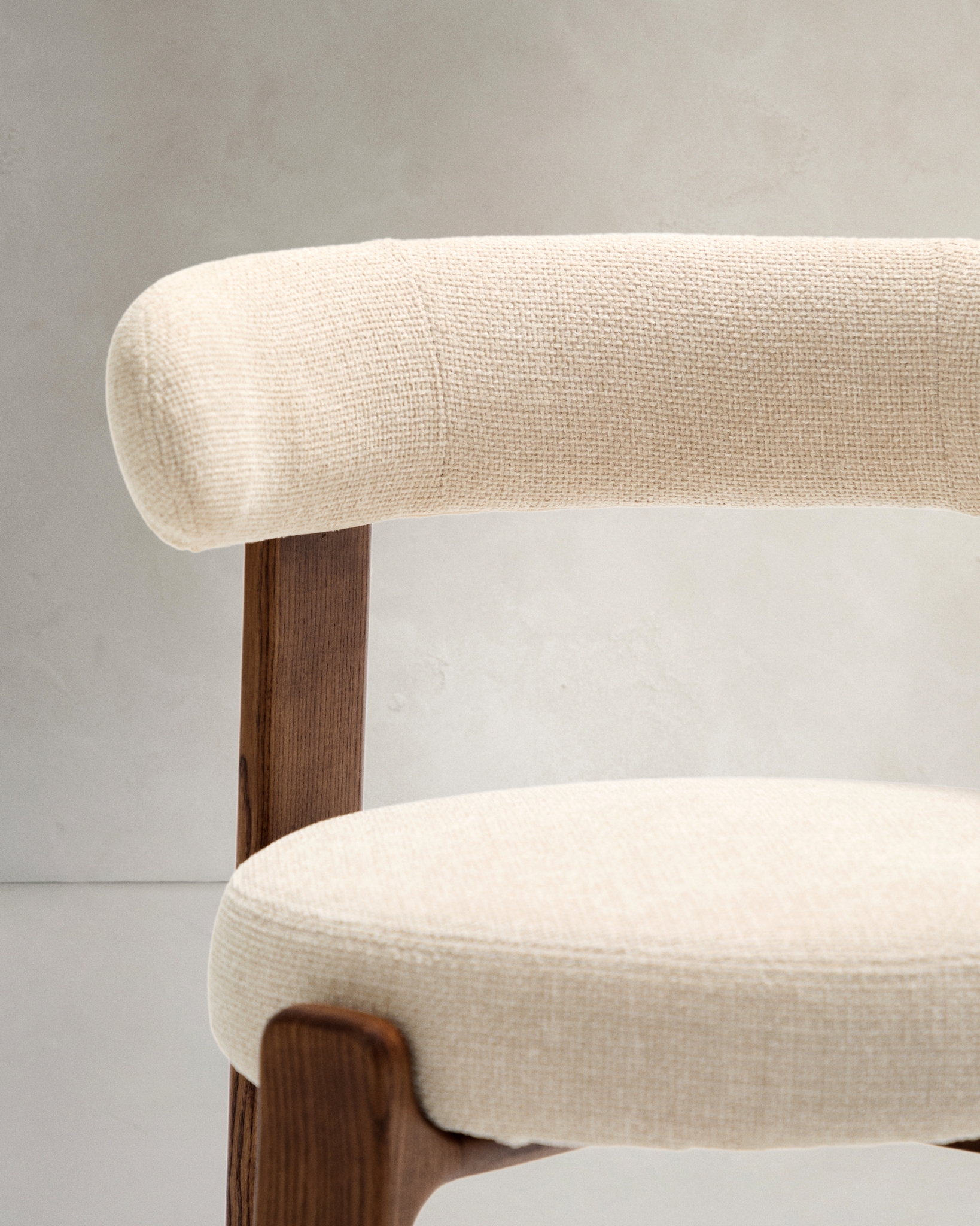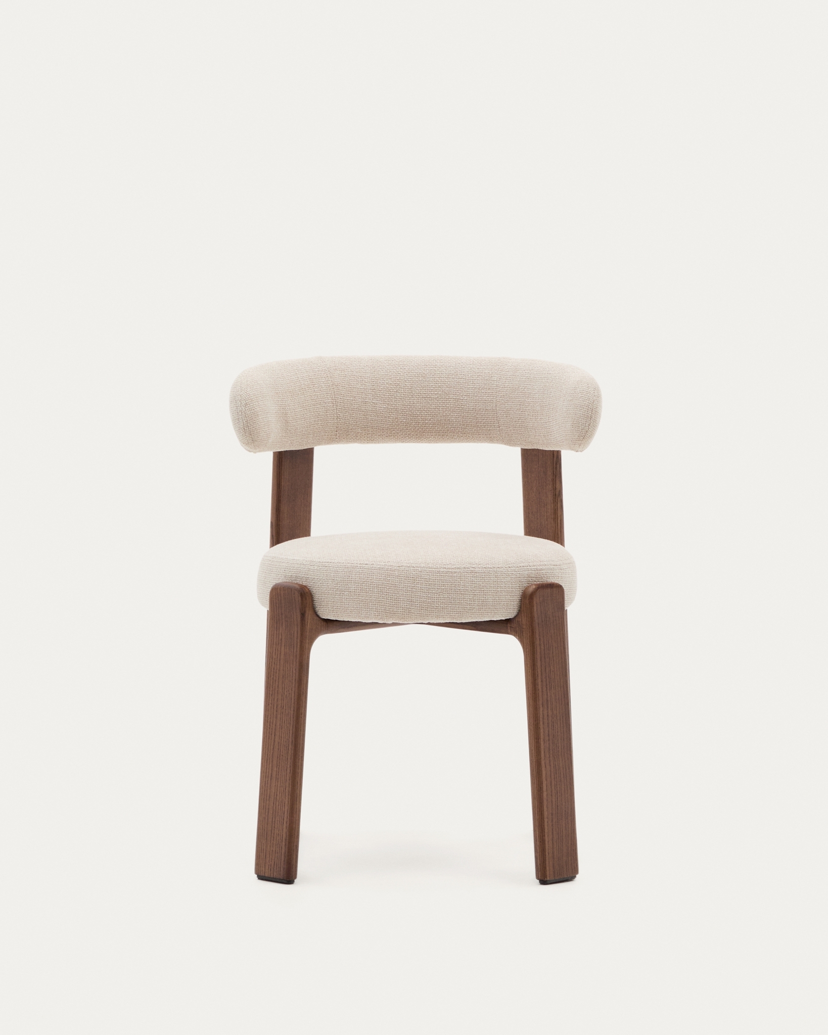 Granite Стул на 4 ножках из бежевого шенилла и массива ясеня в отделке орех