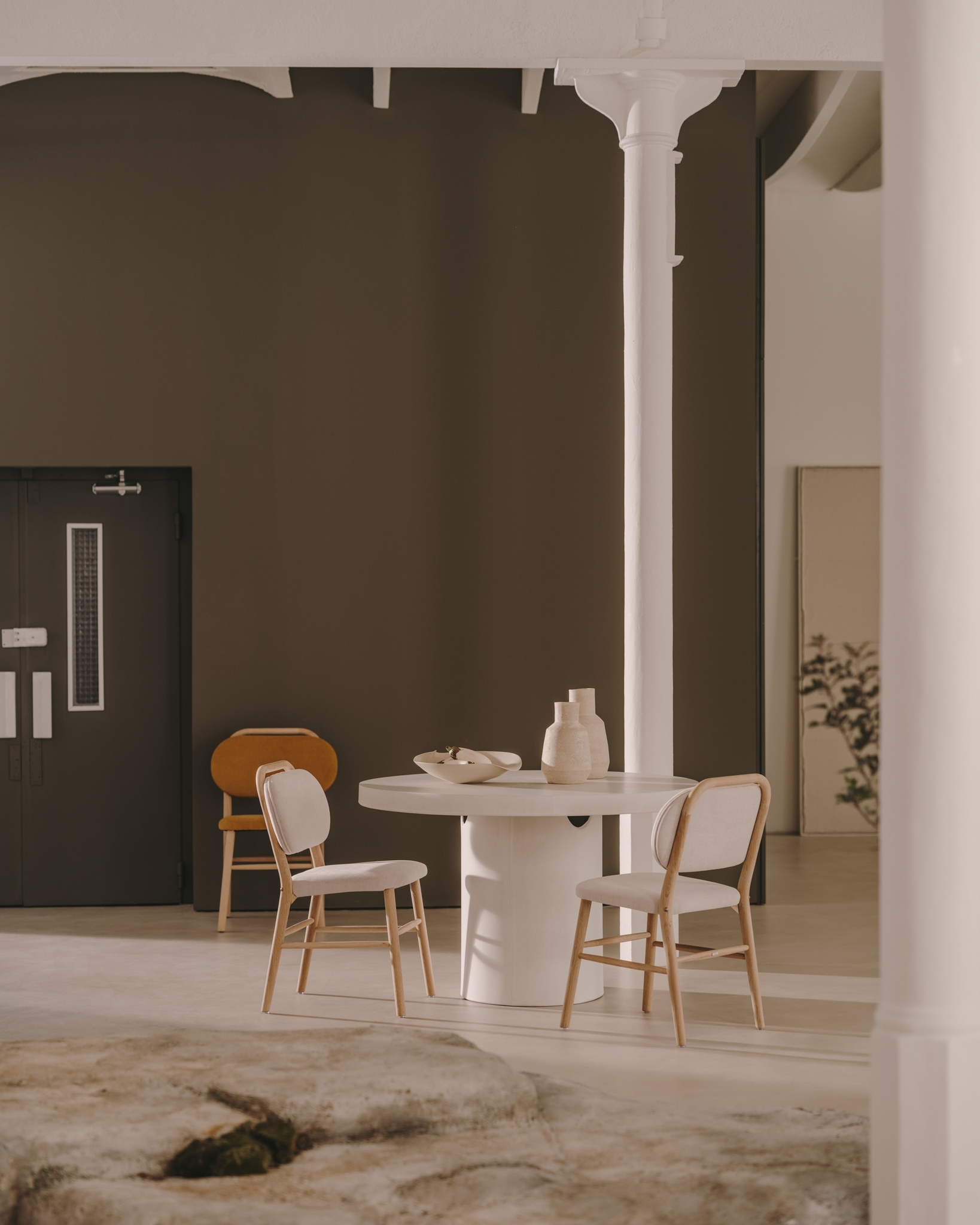 Helda Стул из горчичной синели и массива дуба