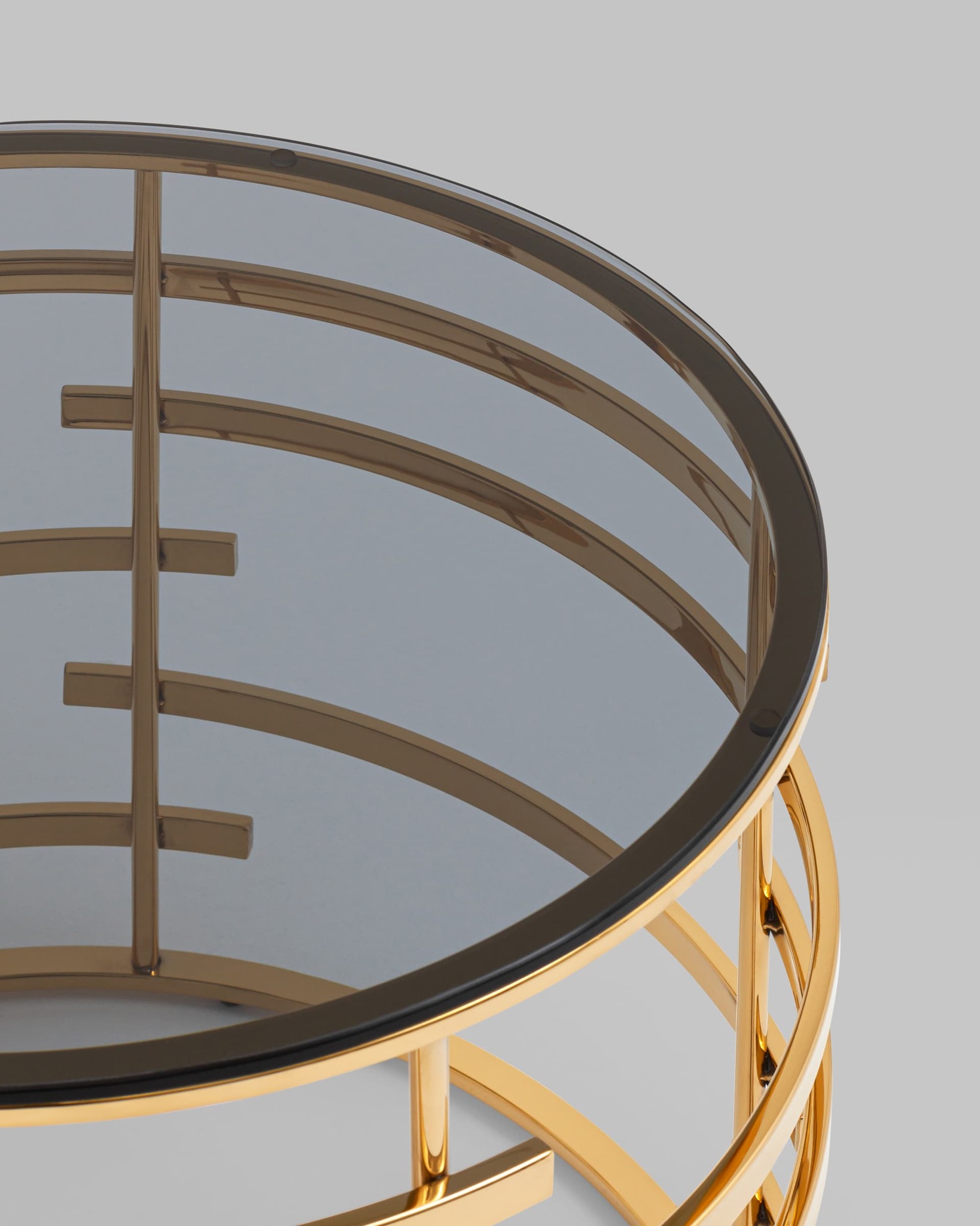 Журнальный столик Инфлюэнс 60*60, стекло smoke, каркас закаленная сталь золото