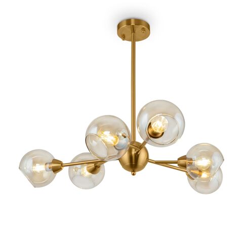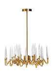 В прошлые эпохи подвешенные к потолку люстры были неотъемлемой частью роскошных залов дворцов и королевских замков. Люстра играет важную роль в планировании и создании настроения помещения. Правильное освещение и удачное оформление люстры способно подчеркнуть красоту и эстетику, внеся в интерьер тот самый недостающий акцент. Подвесную люстру можно расположить над обеденным столом или в гостиной над местом сбора гостей. Каркас люстры выполнен из латуни. А необычная форма изделия из прозрачного стекла добавляет красоты и изящества любому современному пространству.