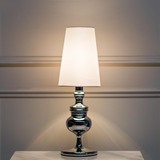 Стильный кабинет, спальную или гостиную невозможно представить без современной настольной лампы. Изящная лампа с жемчужно-белым пластиковым абажуром на фигурной ножке из полированного металла украсит интерьер как в классическом, так и в современном стиле...