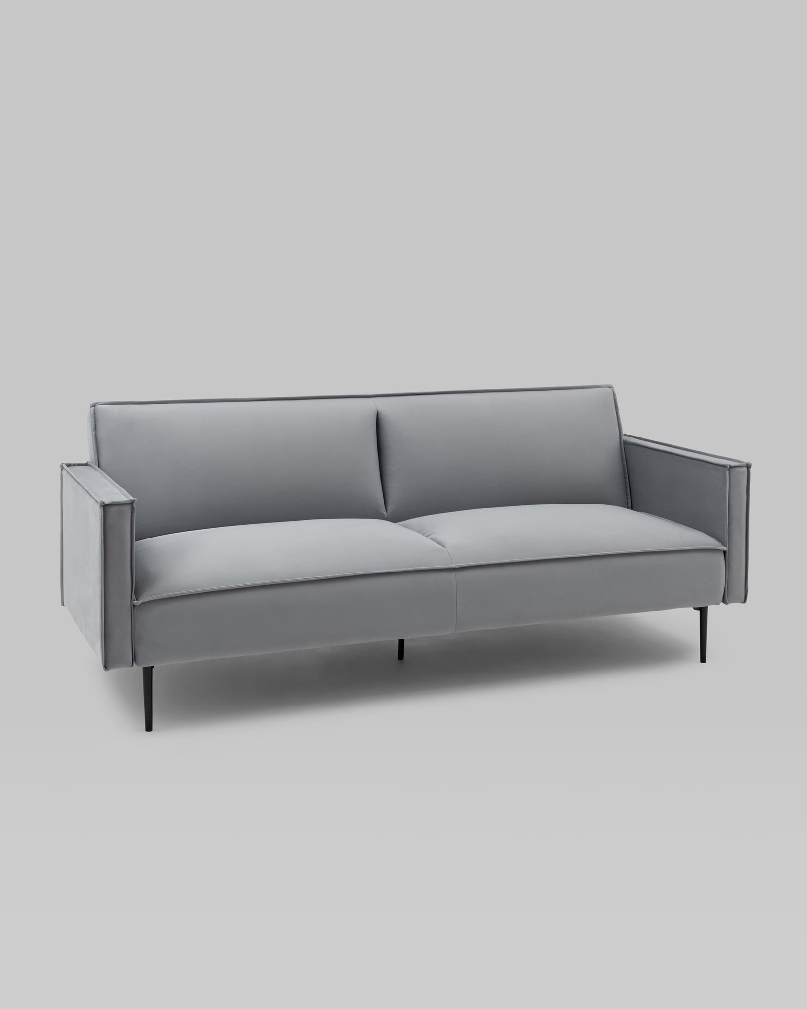 Диван прямой с подлокотниками Кассель велюр серый раскладной ножки венге металл