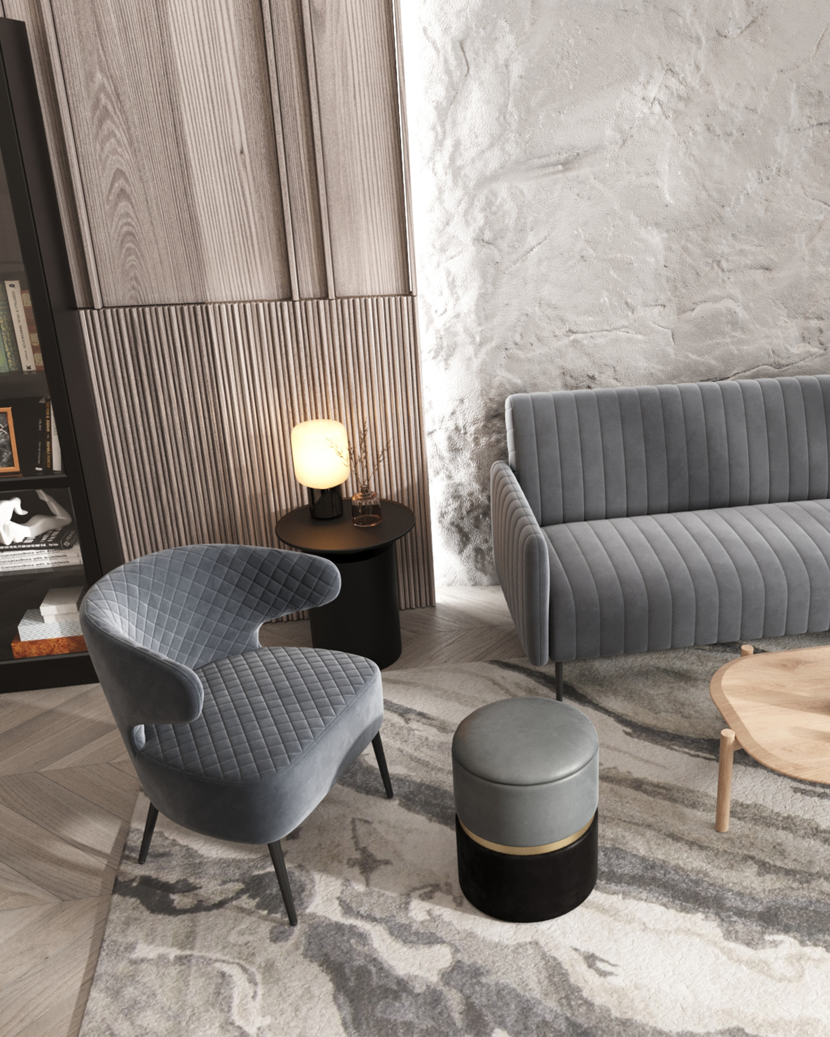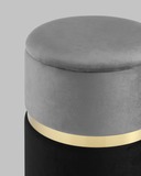 Пуф Кэрри с ящиком велюр серо-черный с декоративным золотым ободком