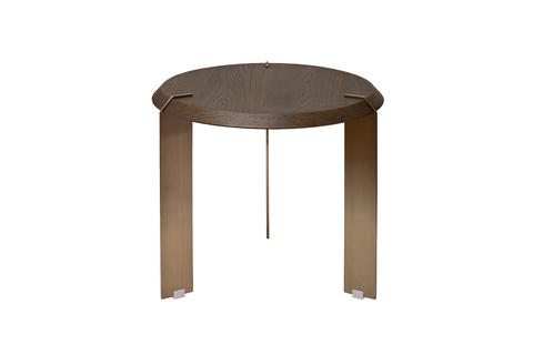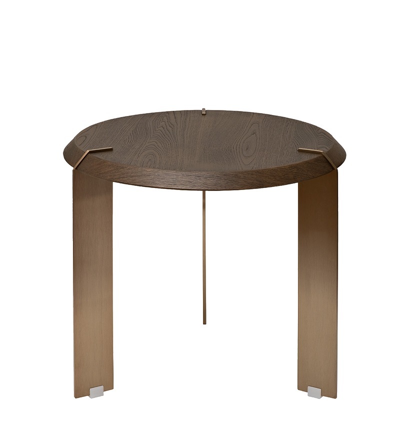 Современный журнальный столик круглой формы станет стильным акцентом в интерьере гостиной. Столешница выполнена из МДФ, отделанного шпоном дерева, тонированного в теплый оттенок мокко. Благородная фактура натурального дерева и лаконичная форма столешницы подчеркнуты матовым блеском опор, выполненных из металла цвета матового золота. Журнальный столик гармонично дополнит мягкую мебель в гостиной или холле и подчеркнет безупречный вкус своего обладателя.