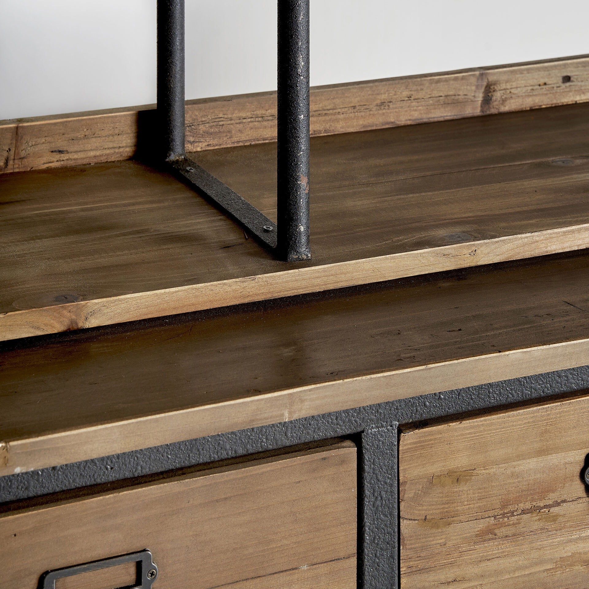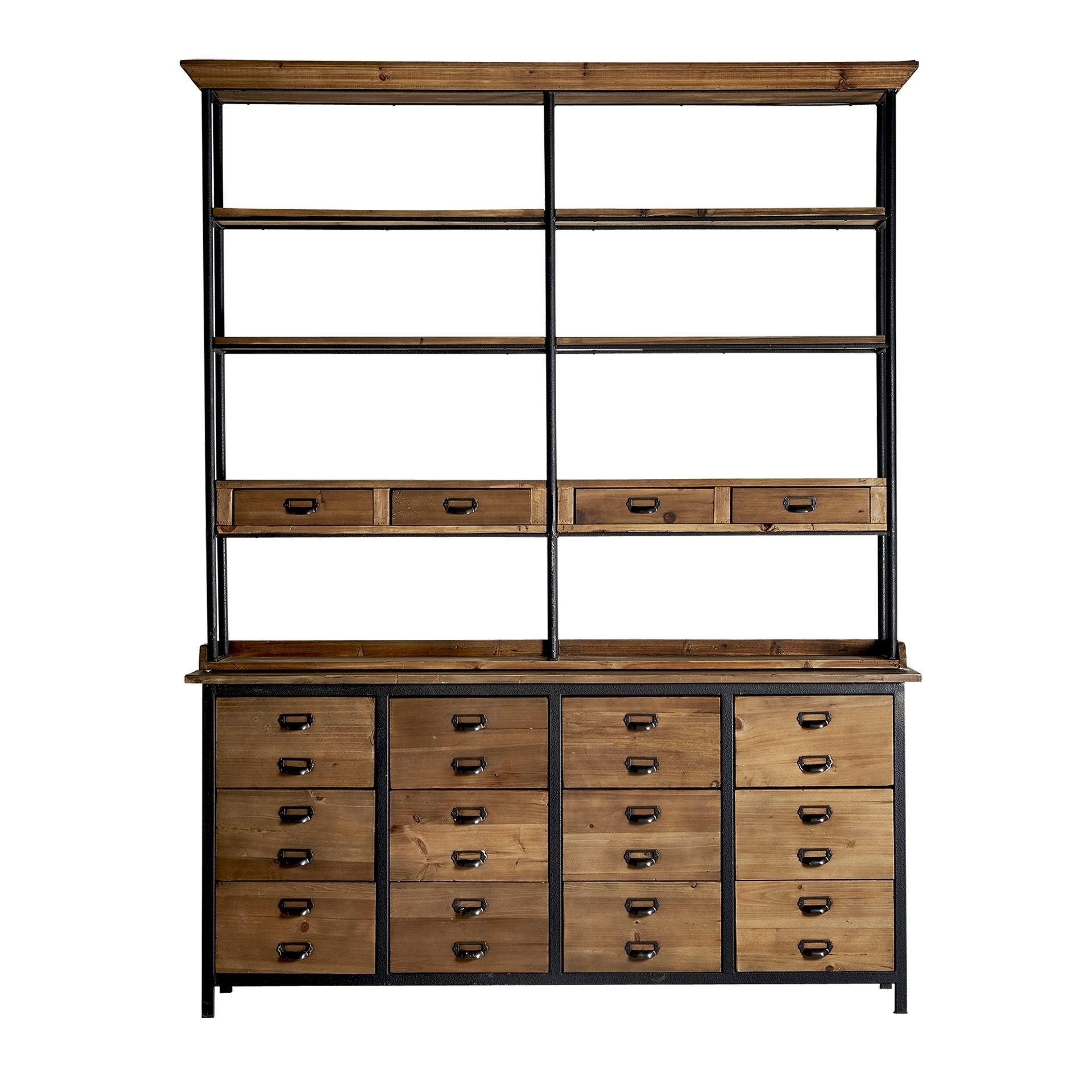Книжный шкаф минот, натуральный состаренный цвет, индустриальный стиль. Изготовлен из древесины вяза. Съемное изделие. Ширина: 180 см, Глубина: 48 см, Высота: 231 см.