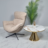 Журнальный столик Atlant станет изюминкой вашего интерьера. Элегантный дизайн и уникальная форма привлекут восхищённые взгляды гостей, а высококачественные материалы гарантируют надёжность и долговечность изделия. Основание столика выполнено из керамогранита с имитацией белого мрамора, что придаёт ему роскошный вид. Стильная металлическая ножка золотого цвета подчёркивает эксклюзивность модели. Изящное золотое обрамление по краю основания добавляет столику винтажный шарм, делая его идеальным выбором для ценителей стиля и элегантности. Круглая форма и компактные размеры делают столик универсальным — его можно использовать как журнальный столик или как прикроватную тумбу. Atlant представлен в двух размерах, которые можно использовать по отдельности или в гармоничной паре.