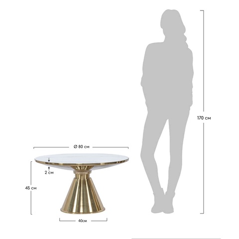 Спецификация: Материал: металл, керамика Размер: диам.80см x 45см Диаметр основания: 40см Вес: 22,7кг Толщина столешницы 2см Толщина керамики 9мм.