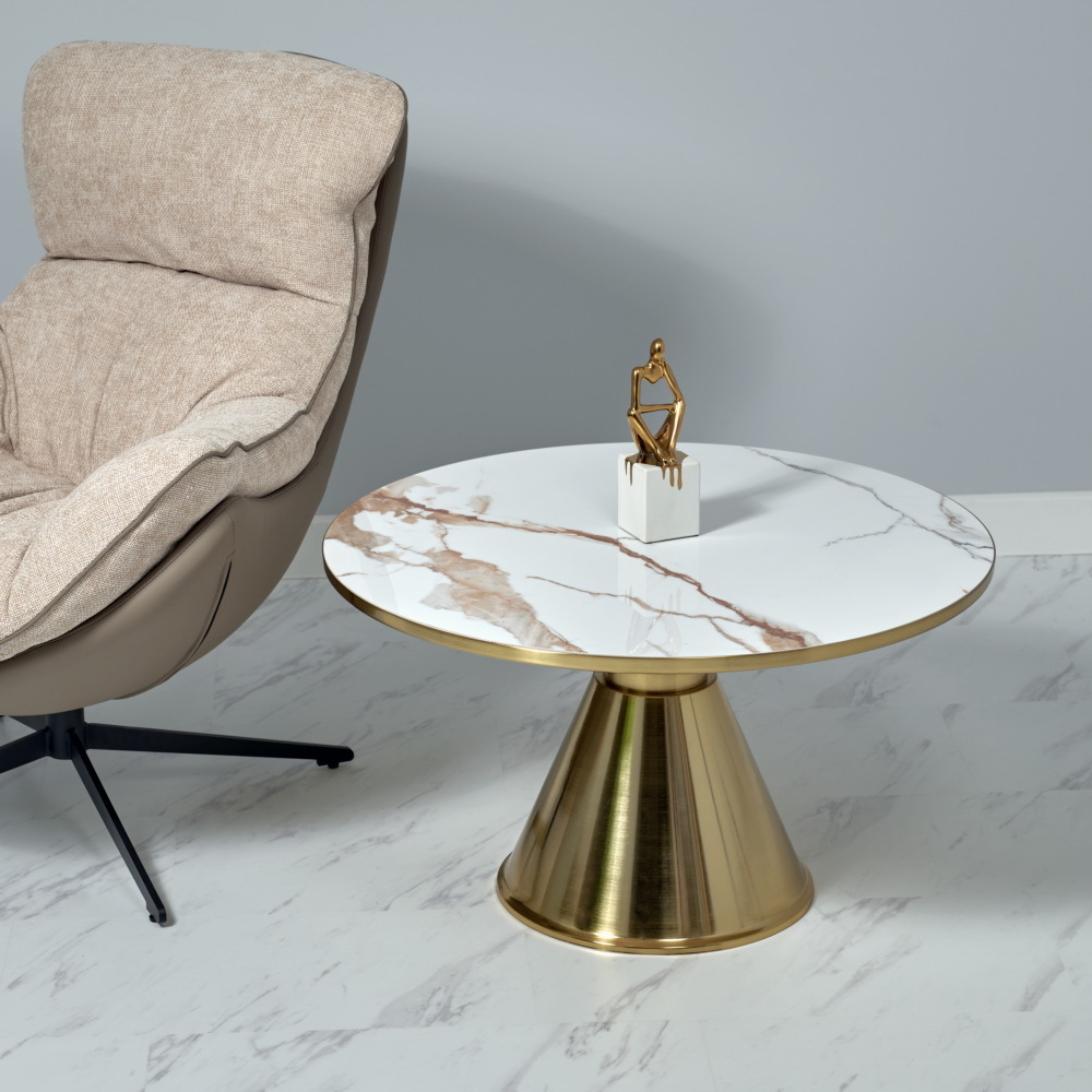 Кофейный столик Atlant диам.80см x 45см, золотой, металл, керамика