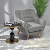 Изящное золотое обрамление по краю основания и золотое металлическое основание под ножкой придают столику винтажный вид, делая его идеальным выбором для тех, кто ценит стиль и элегантность. Круглая форма и компактные размеры делают его универсальным, позволяя использовать столик не только в качестве журнального, но и в качестве прикроватной тумбы или дополнительной подставки в любом уголке вашего дома.