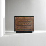Строгая форма, сочетание гладкой эмали и древесной текстуры, графичные ручки в цвет корпуса делают изделие самодостаточным и универсальным предметом современного интерьера. Материалы: корпус - МДФ, полуглянцевая черная эмаль; фасады - МДФ, шпон американского ореха, бесцветное минеральное масло; вкорпуса ящиков - ЛДСП. Фурнитура - направляющие скрытого типа с доводчиками. Возможен выбор других типов отделки, варианты представлены на последнем фото. Конфигурация: 8 ящиков Изделие поставляется в собранном виде.