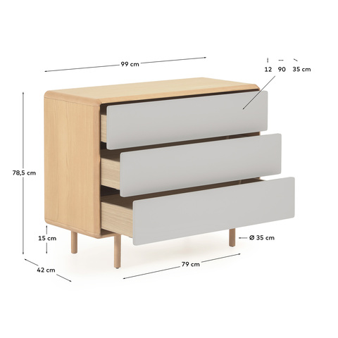 Комод Anielle из массива ясеня с тремя ящиками 98,9 x 78 см