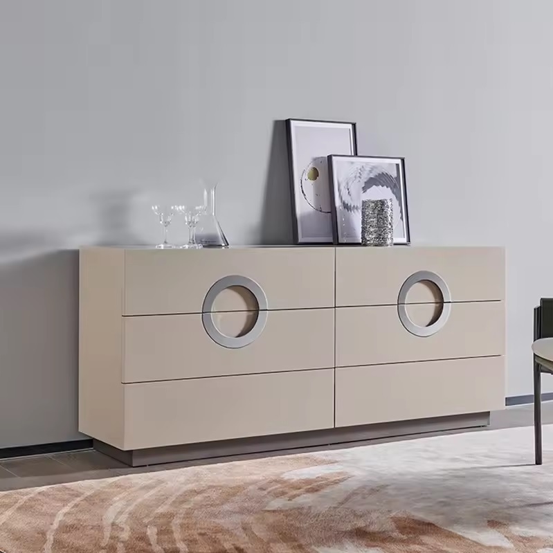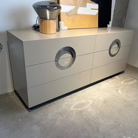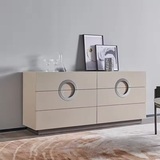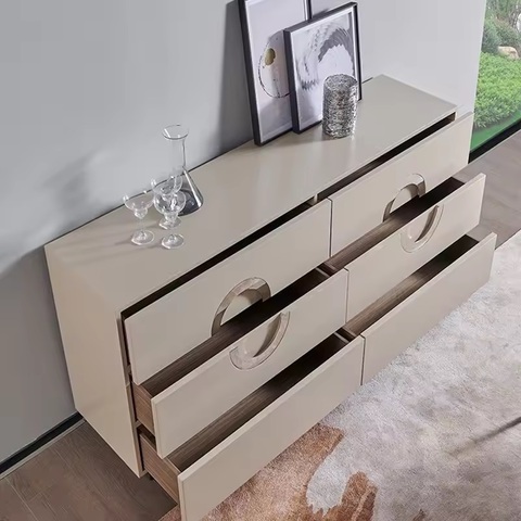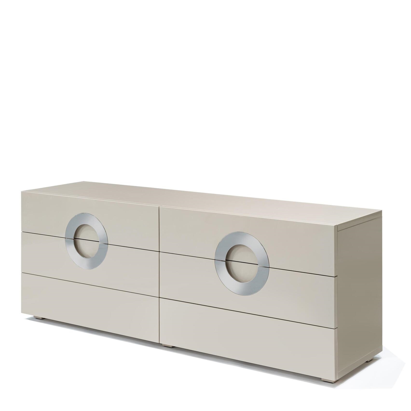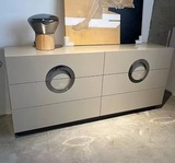 Комод имеет уникальный дизайн фасадов с интегрированными ручками. 6 вместительных ящиков оснащены выдвижной системой со скрытым креплением. Большой размер комода обеспечивает много места для хранения внутри. Высота комода позволяет использовать столешницу в качестве открытой полки. Комод выполнен из МДФ; покрытие - акриловая краска; лакировка - акриловый прозрачный лак.