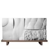 Благодаря неожиданному сочетанию декоративного искусства и исторического языка лаборатория Driade разработала комод с барельефом с классическими скульптурными формами, который станет уникальным предметом мебели в эклектичной и изысканной обстановке. Ящики установлены на деревянной платформе, доступной в двух размерах, и расположены вертикально и горизонтально; каждый из них украшен низким рельефом, изображающим фрагменты человеческого тела, с явным отсылом к четким линиям классических статуй.