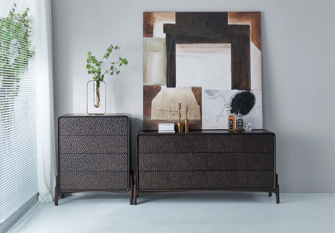 Комод из шпона и массива ясеня представлен в двух размерах:
