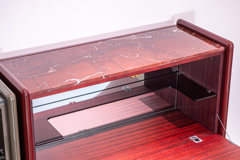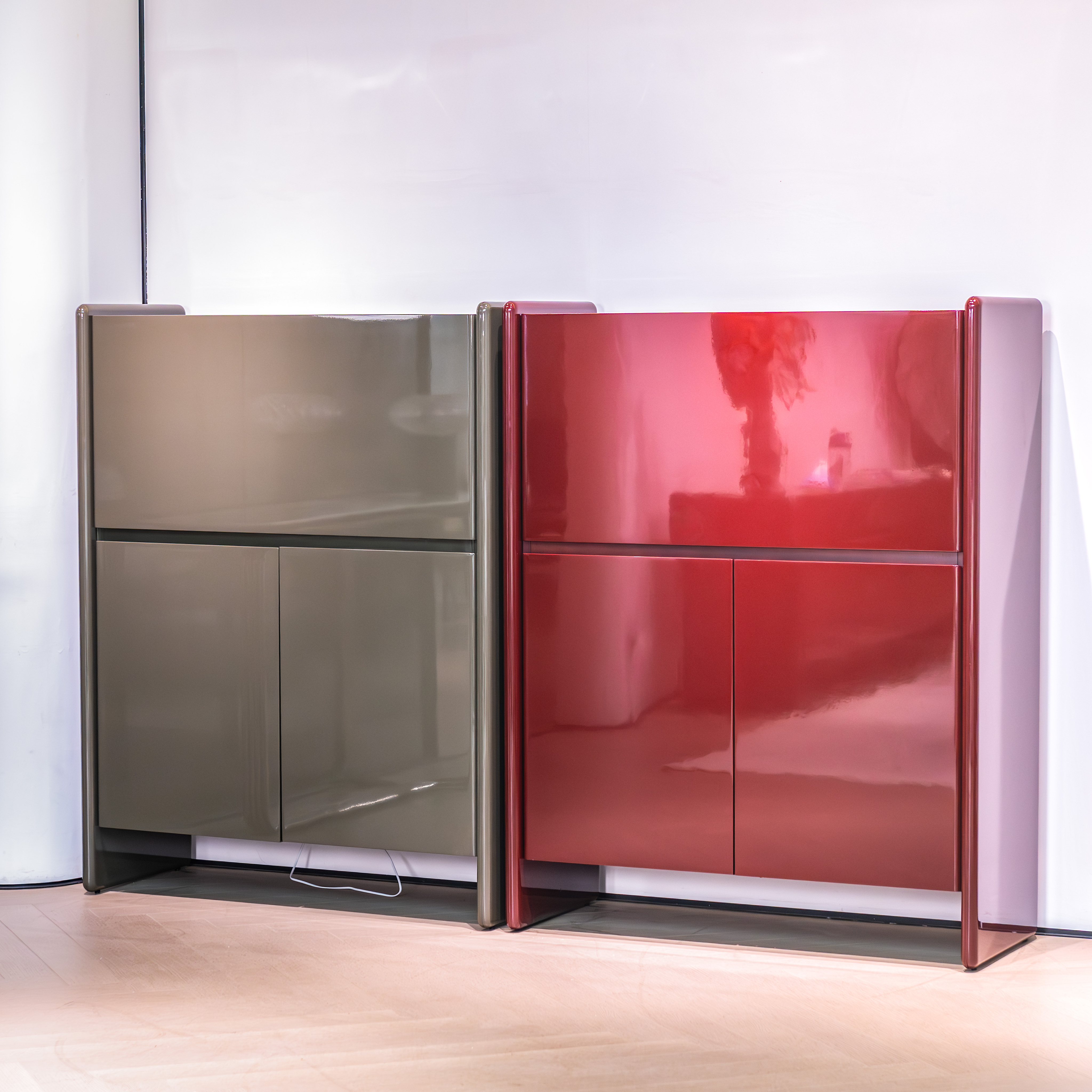 Поверхность комода глянцевая, покрытие лаковое.
