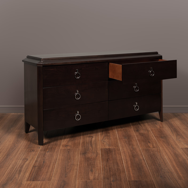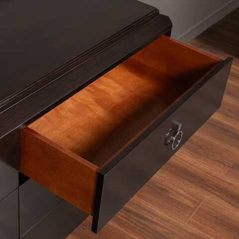 Шикарный вместительный комод с 6 ящиками в стиле неоклассика от итальянского бренда Fratelli Barri. К комоду можно подобрать идентичную по дизайну прикроватную тумбочку, кровать и другую мебель. Каркас — массив дерева и высококачественная МДФ высокой плотности, отделка — натуральный шпон вишни. Все выдвижные ящики снабжены направляющими. Модель принадлежит к коллекции мебели Mestre в стиле неоклассика от Fratelli Barri. Здесь вы можете найти мебель для гостиной, столовой и спальни: сотни вариантов доступны для комбинации друг с другом.