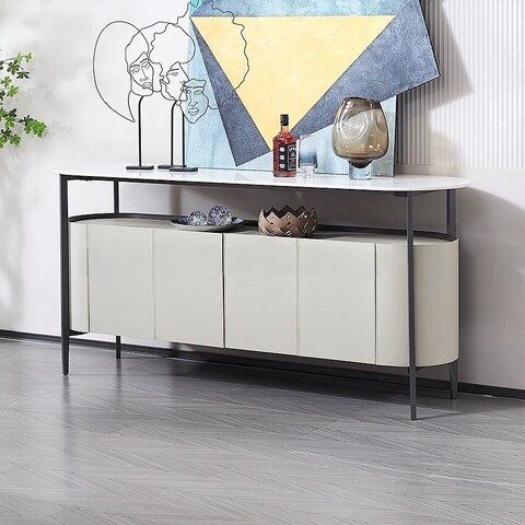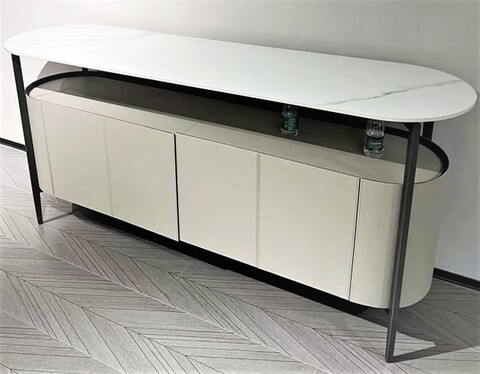 Столешница из прочного и износоустойчивого керамогранита; поверхность глянцевая белая.