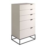 Шифоньер Personale от фабрики Angel Cerda – лаконичный минимализм для городских интерьеров. Шифоньер Personale с первого взгляда убеждает в своем безупречном исполнении. Гладкий фасад хорошо сочетается с любым интерьером, а разные по вместительности ящики – показатель эргономичности изделия во время эксплуатации. Эту модель стоит рассмотреть людям современным, стремящихся сделать обстановку в своей квартире модной и удобной. Шифоньер прямоугольной формы. В каркас вмонтировано пять выдвижных ящиков разной высоты. Все они оснащены мягкой системой закрытия. Также предусмотрены металлические ручки в виде пластин. Материал изготовления – МДФ с лаковым покрытием. Для базового фабричного варианта цвет у изделия серый. Возможна окраска в любой цвет палитры Ral. Опора сделана из стали, покрыта черной порошковой краской для защиты от негативного воздействия внешней среды. Она имеет рамочную конструкцию, которая прикручена к изделию по всему периметру. Это обеспечивает устойчивость и стойкость к высоким весовым нагрузкам. Прочность металла – гарантия надежности изделия. Вес составляет 30 кг. Размеры: ширина – 60 см, высота – 111 см, глубина – 45 см. Потребуется сборка. В комплектацию включен крепеж, инструкция. В коллекции корпусной мебели Angel Cerda представлена другая мебель с аналогичным дизайном. Это прикроватная тумбочка Estetico и комод Personalidad. Отделка - лак RAL7035 Pearl Grey Gloss.