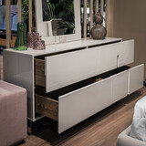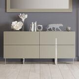 Комод из коллекции Vigo от MOD Interiors — это сочетание эстетики и функциональности, которое станет центральным элементом вашего интерьера. Его гладкая поверхность, покрытая глянцевым серо-бежевым лаком, излучает свет и тепло, придавая пространству уют. Модель выполнена в современном европейском стиле. Комод оснащен 4 вместительными ящиками, что обеспечивает удобное место для хранения текстиля, личных вещей или других элементов, поддерживая порядок и организованность в вашем доме. Чистые линии и плавные формы делают его универсальным предметом мебели, который легко вписывается в различные стили оформления, от минимализма до модерна. Этот комод не только практичен, но и служит выразительным акцентом, отражающим ваш взыскательный вкус и стремление к эстетике. Модель изготовлена из высококачественной МДФ высокой плотности. Ножки и вставка — из высококачественной полированной стали.