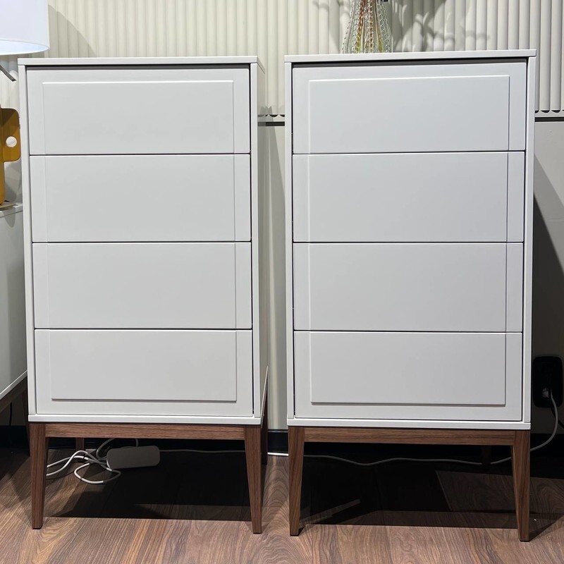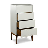 Высокий комод с четырьмя ящиками, на высоких ножках из коллекции Marbella от испанского бренда MOD Interiors. Лаконичные фасады с интересной фрезеровкой. Корпус комода выполнен из высококачественного МДФ высокой прочности в отделке матовый лак светло-серого оттенка. База комода изготовлена из массива дерева с покрытием из натурального шпона ореха. Внутри все ящики оснащены системой легкого открывания push-to-open. Качественные и долговечные механизмы. Цена указана за 1 комод.