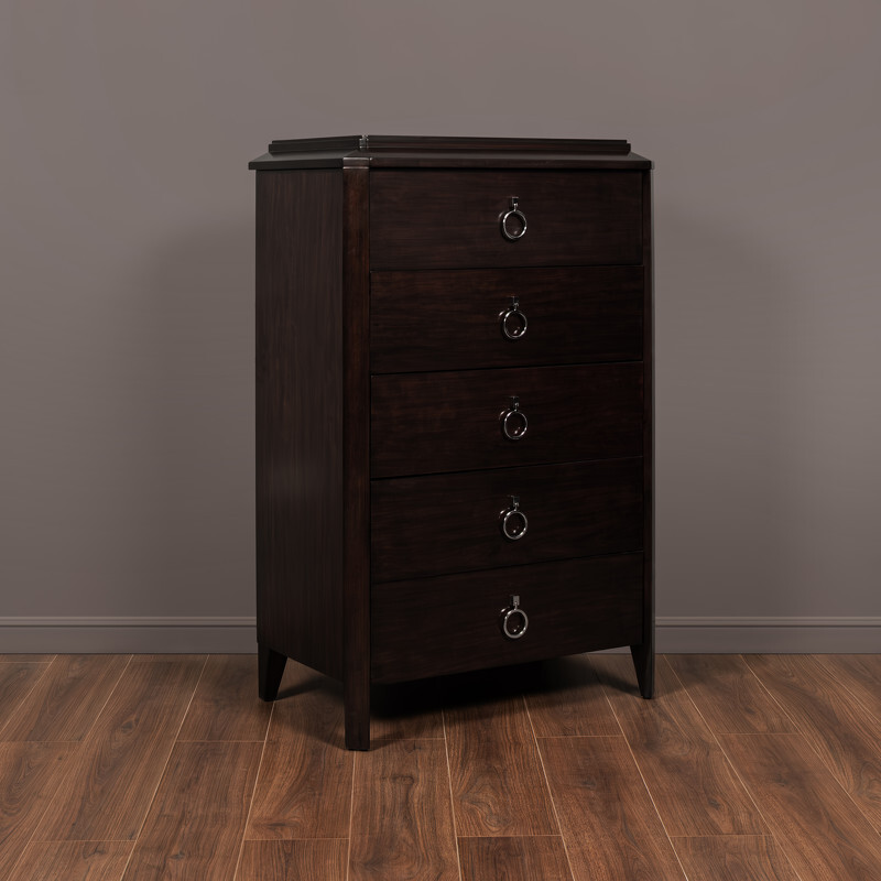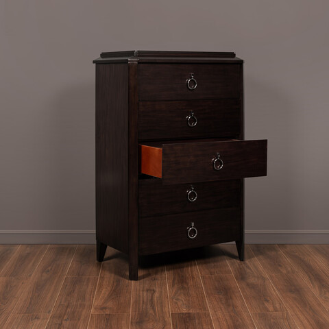 Шикарный высокий комод с 5 ящиками в стиле неоклассика от итальянского бренда Fratelli Barri. К комоду можно подобрать идентичную по дизайну прикроватную тумбочку, кровать и другую мебель. Каркас — массив дерева и высококачественная МДФ высокой плотности, отделка — натуральный шпон вишни. Все выдвижные ящики снабжены направляющими. Модель принадлежит к коллекции мебели Mestre в стиле неоклассика от Fratelli Barri. Здесь вы можете найти мебель для гостиной, столовой и спальни: сотни вариантов доступны для комбинации друг с другом.