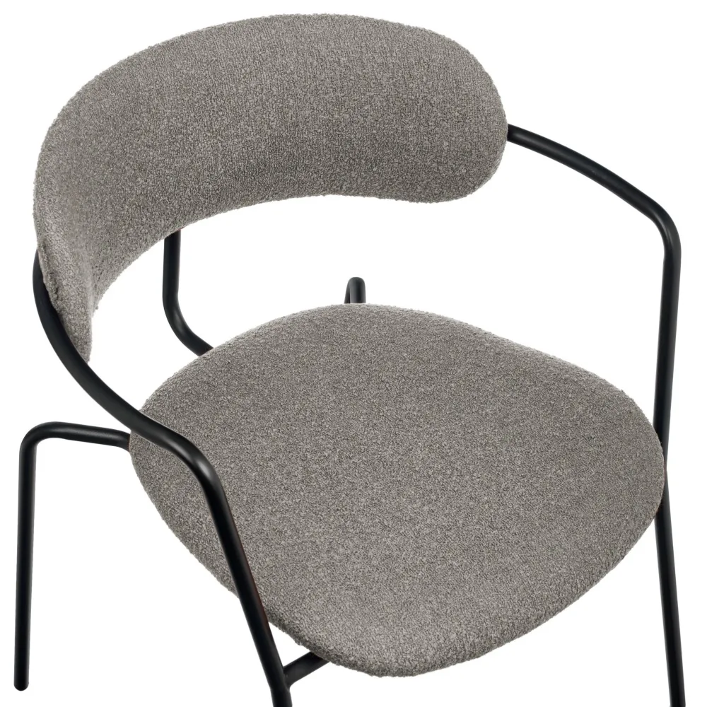 Спецификация: Материал: фанера, пенополиуретан, букле Ножки из метала окрашены в черный матовый цвет. Металлическая труба размер: Ø19мм. Толщина: 1.2мм Плотность пенополиуретана: 20кг/м³ на спинке, 25 кг/м³ в сиденье Размер: 56х55х75см Высота сиденья: 47см Вес: 5,2кг Максимальная нагрузка: 120кг Поставляется в собранном виде.