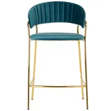 Мягкое велюровое сиденье обеспечивает исключительный комфорт во время использования. Прочные металлические ножки с золотым покрытием гарантируют устойчивость и долговечность всей конструкции.