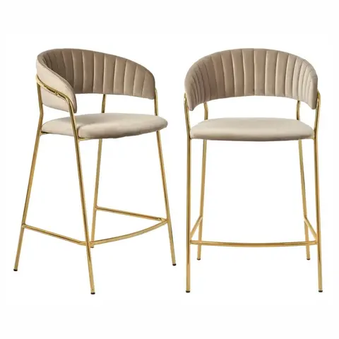 Комплект из двух полубарных стульев Turin в роскошном исполнении. Модель латте с золотыми ножками станет ярким акцентом в интерьере кухни или гостиной.