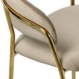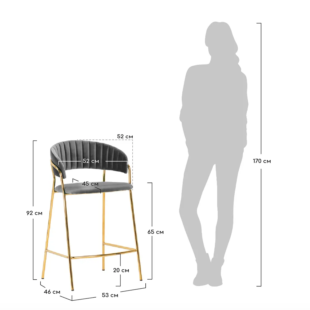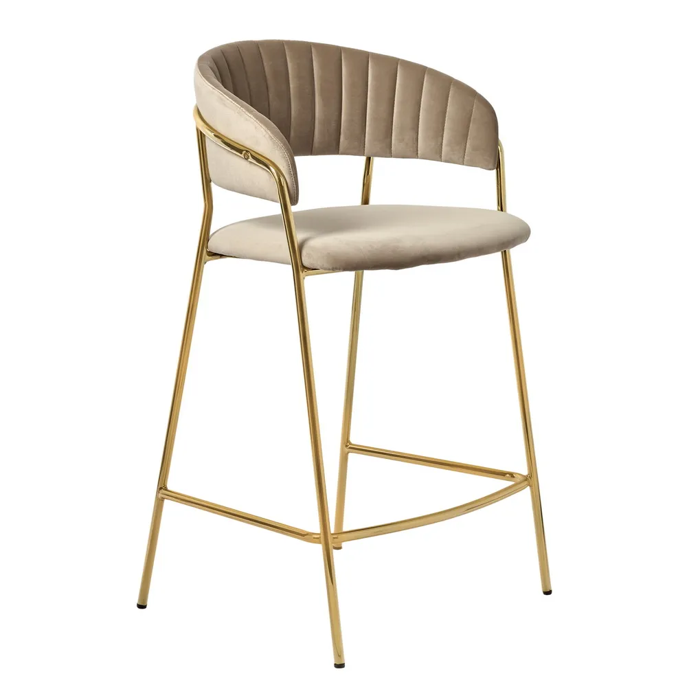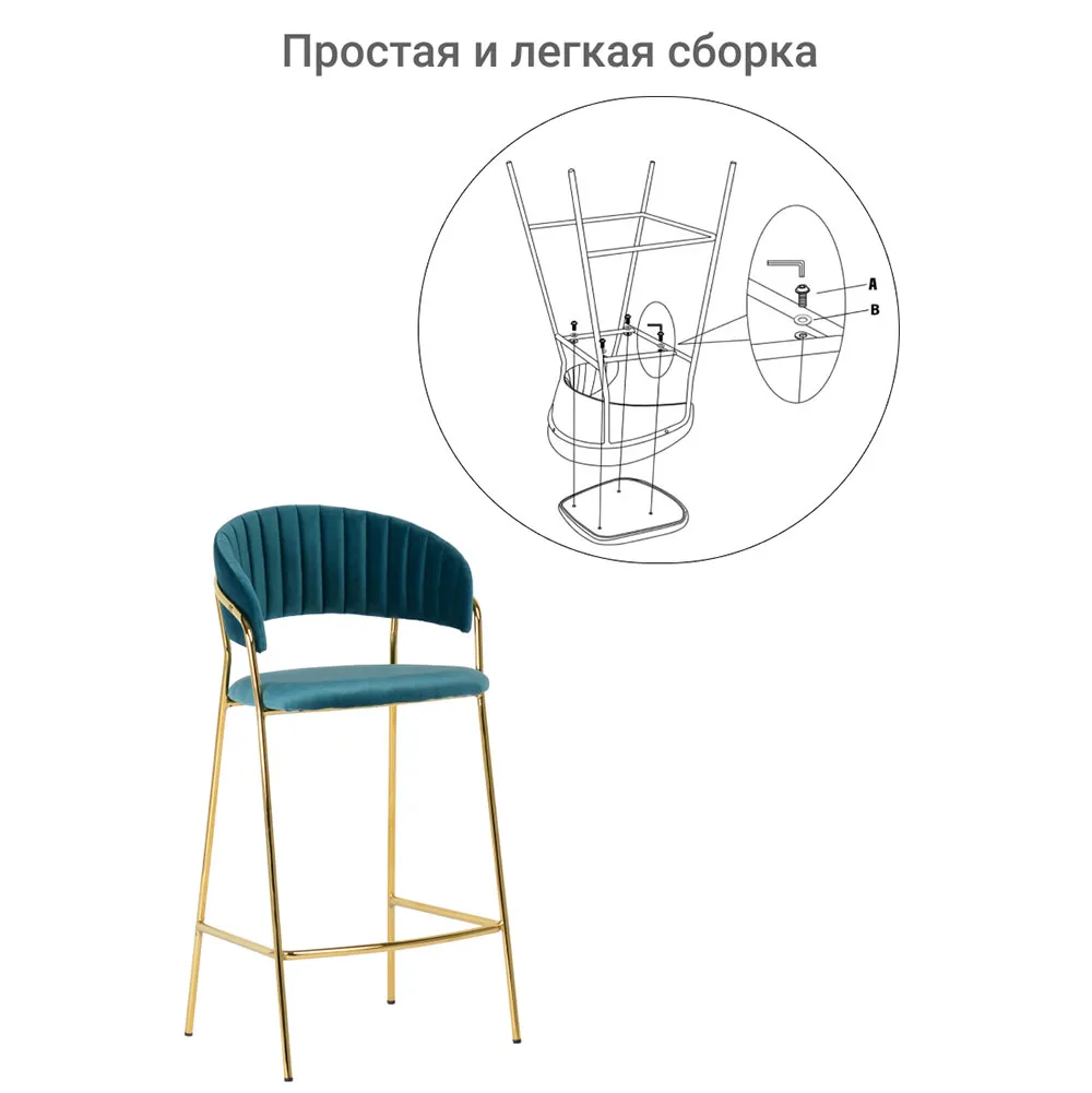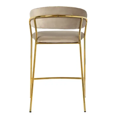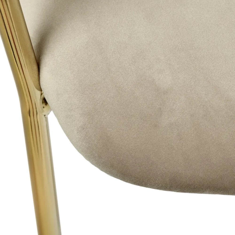 Мягкое велюровое сиденье обеспечивает комфорт во время продолжительных посиделок. Элегантные ножки из прочного металла с золотым покрытием придают конструкции исключительную устойчивость и визуальную лёгкость.
