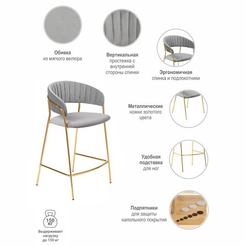 Комплект из 2-х стульев полубарных Turin серый с золотыми ножками