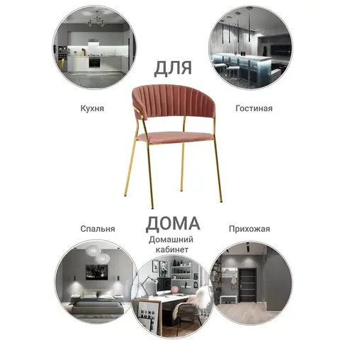 Спецификация: Материал: фанера, пенополиуретан, велюр Материал ножек: сталь Цвет ножек: золотой Размер стула: 56х50х78х48 см Вес стула: 5,5кг Вес комплекта: 11кг Максимальная нагрузка 150кг Поставляется в разобранном виде. В комплекте идёт инструкция и комплект аксессуаров для сборки.