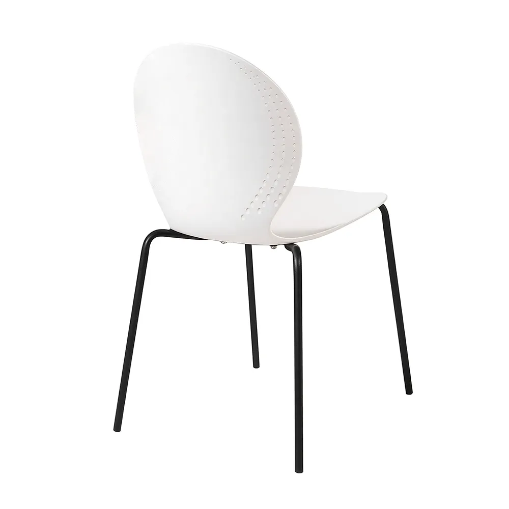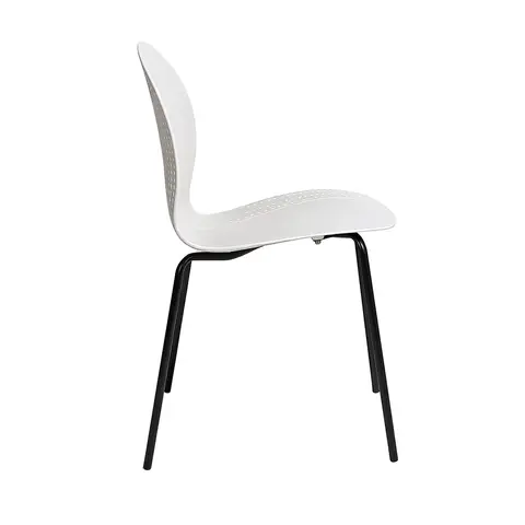 Цельнолитое пластиковое сиденье с плавными формами, создаёт комфортное пространство для посадки. Особенностью изделия является изящная перфорация по краям спинки и сиденья, придающая легкости общему облику и привлекающая внимание своей необычной декоративностью. Этот стул станет прекрасным дополнением интерьера, сочетающего минимализм и современность, гармонично вписываясь в любую обстановку и подчеркивая вкус владельца.