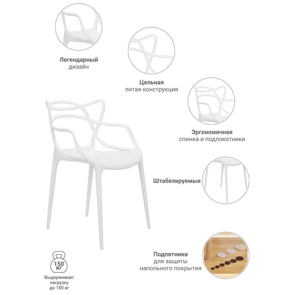 "Стул Masters - одно из самых удивительных и привлекательных решений дизайна пластиковых стульев. Уникальное сочетание тонких линий элементов спинки, подлокотников и ножек, предоставляет возможность универсального решения для жилых помещений, современных офисных пространств, баров, кафе, ресторанов и отелей. Варианты матовых отделок и металлизированного эффекта пластика расширяют возможность реализаций со стульями Masters в разных по стилю и дизайну помещениях."