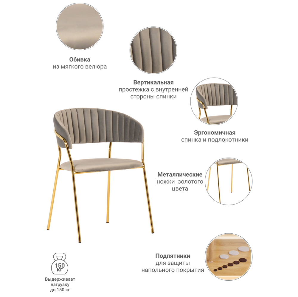 Комплект из 4-х стульев Turin латте, золотые ножки