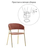 Спецификация: Материал: фанера, пенополиуретан, велюр Материал ножек: сталь Цвет ножек: золотой Размер стула: 56х50х78х48 см Вес: 6кг. Вес комплекта: 24кг. Максимальная нагрузка 150кг Поставляется в разобранном виде. В комплекте идёт инструкция и комплект аксессуаров для сборки.