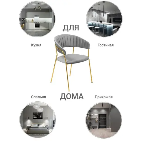 Комплект из четырех стульев Turin в серых тонах с золотыми ножками — это идеальное сочетание современного дизайна и роскоши. Модель станет ярким акцентом в гостиной, столовой или офисе, демонстрируя безупречный вкус.
