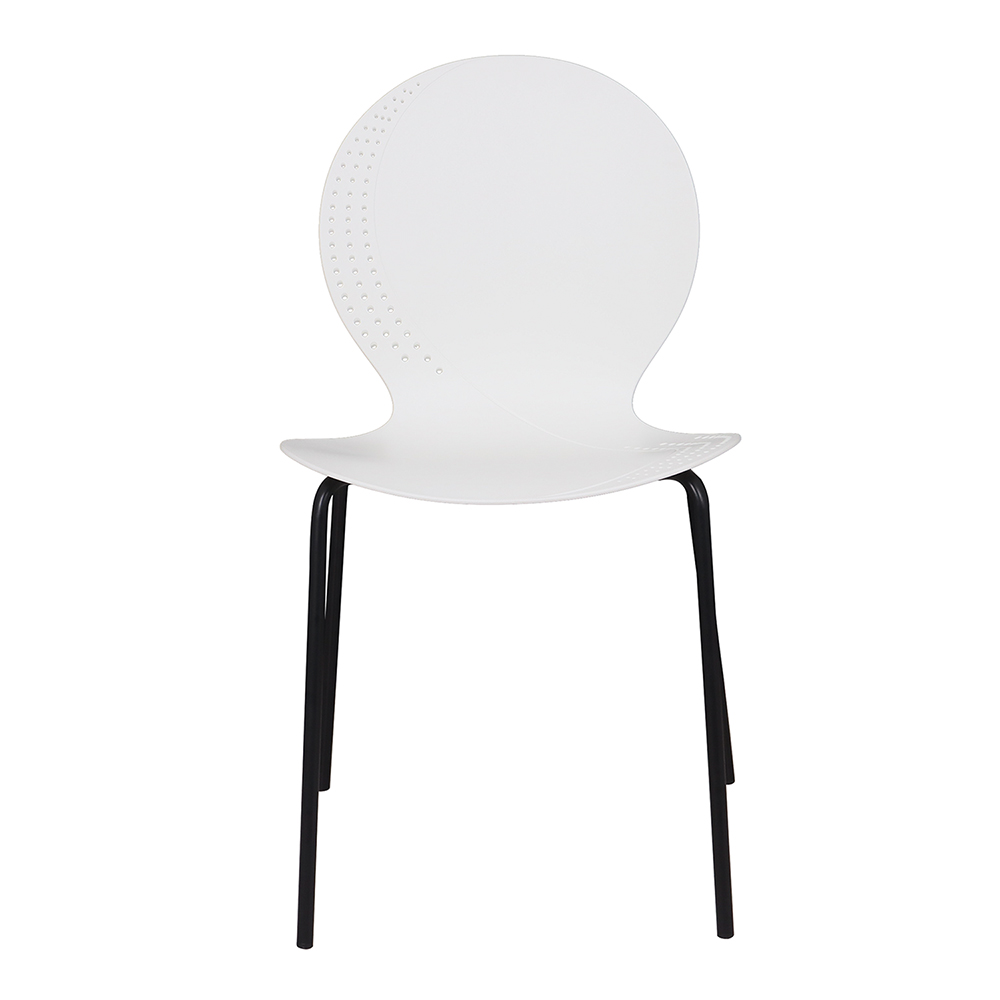 Стул элегантного дизайна, подчеркивающий сочетание современных материалов и утонченного стиля. Его металлические ножки придают конструкции прочность и устойчивость, обеспечивая надежность даже при интенсивном использовании. Цельнолитое пластиковое сиденье с плавными формами, создаёт комфортное пространство для посадки. Особенностью изделия является изящная перфорация по краям спинки и сиденья, придающая легкости общему облику и привлекающая внимание своей необычной декоративностью. Этот стул станет прекрасным дополнением интерьера, сочетающего минимализм и современность, гармонично вписываясь в любую обстановку и подчеркивая вкус владельца.