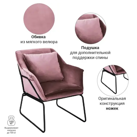 Спецификация: Кресло: Материал: металл, фанера, пенополиуретан, велюр Цвет: пудровый с чёрными ножками Размеры, см: Ш68 х Г79,5 х В78,5 Вес:10,2кг В комплекте идёт инструкция и комплект аксессуаров для сборки. Оттоманка: Материал: металл, фанера, пенополиуретан, велюр Цвет: пудровый с чёрными ножками Максимальная нагрузка: 80кг Размеры, см: Ш48 х Г40 х В37 Вес:3,4кг