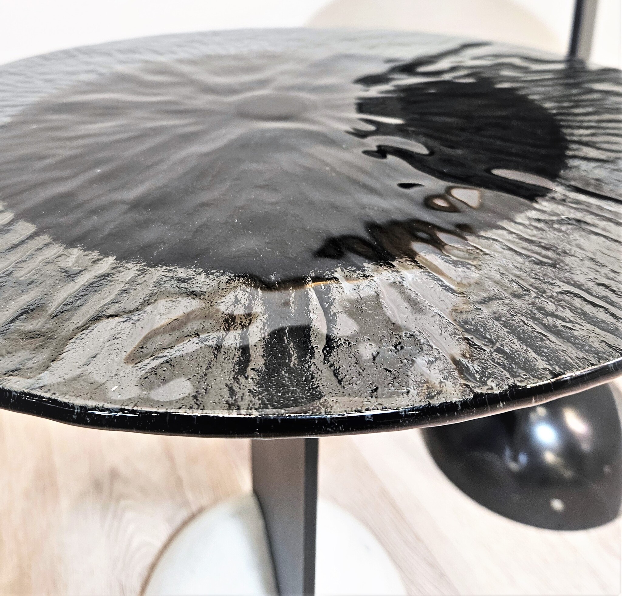 Столешница - рифленое стекло, цвет дымчатый.
