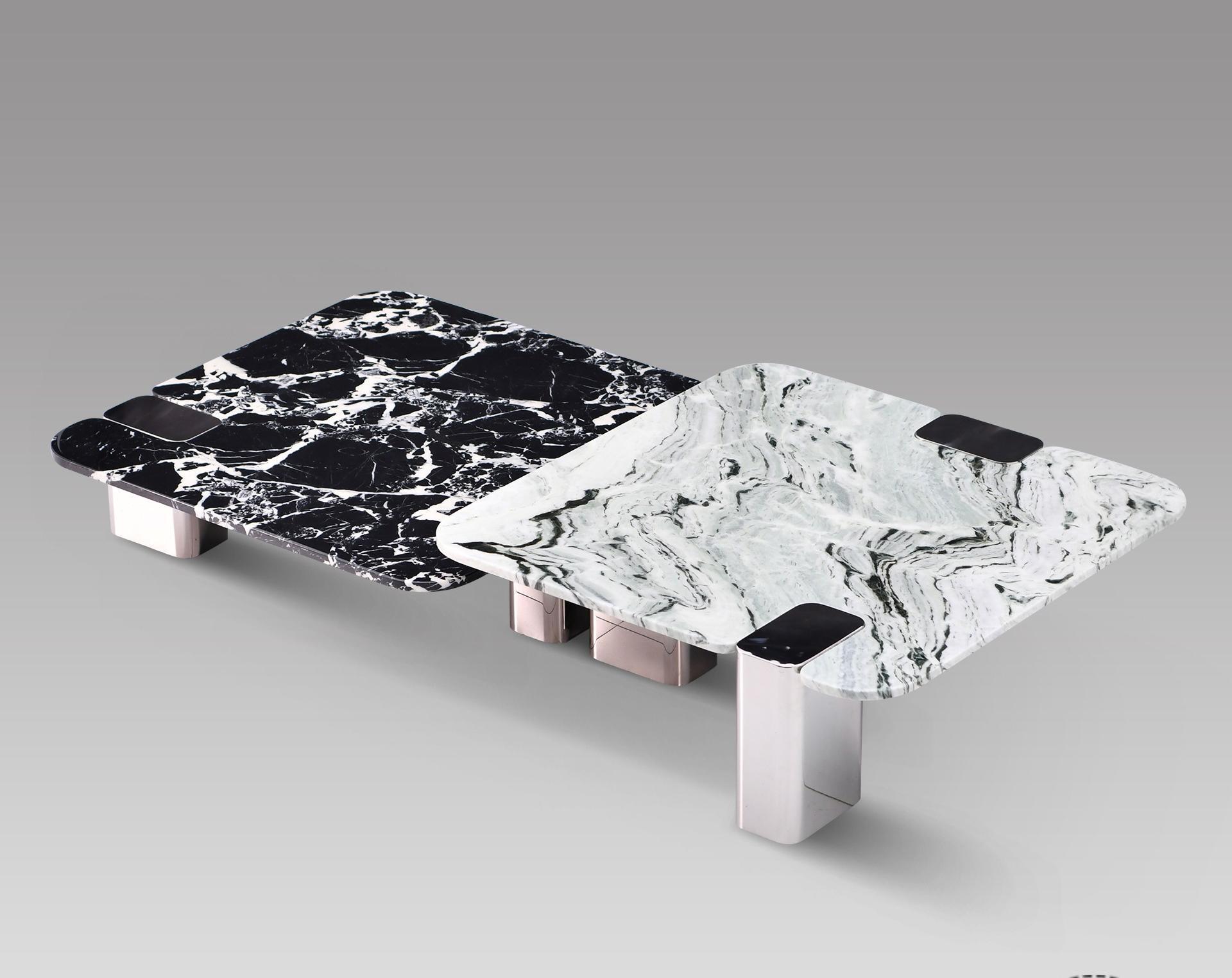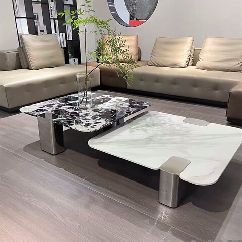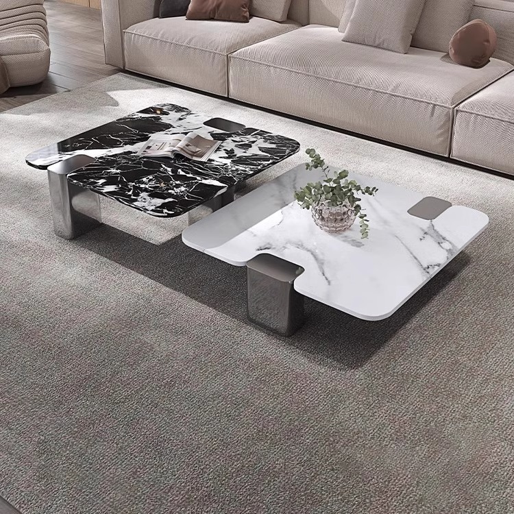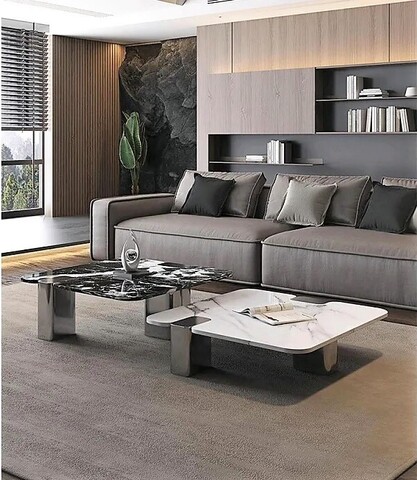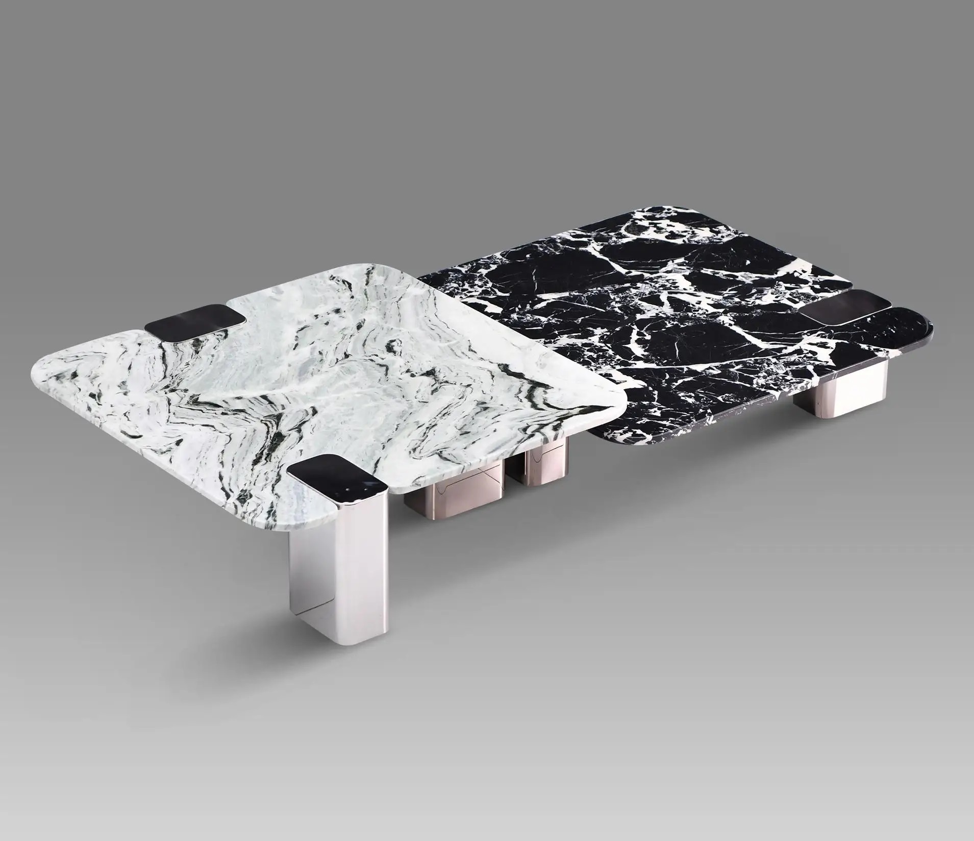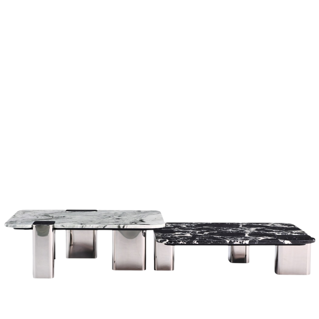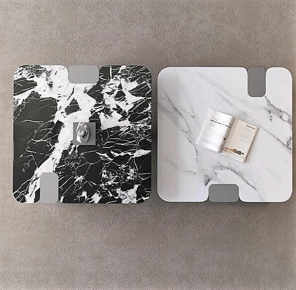 Комплект монохромных столиков с белой и черной столешницами — это вершина роскоши в мире мебели, демонстрирующая гармоничное сочетание элегантности и прочности.
