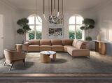 Современное кресло с подлокотниками, сиденье и спинка которого обиты натуральной коричневой коровьей кожей. Стиль и деревянные ножки цвета ореха делают это кресло идеальным сочетанием дизайна и комфорта.