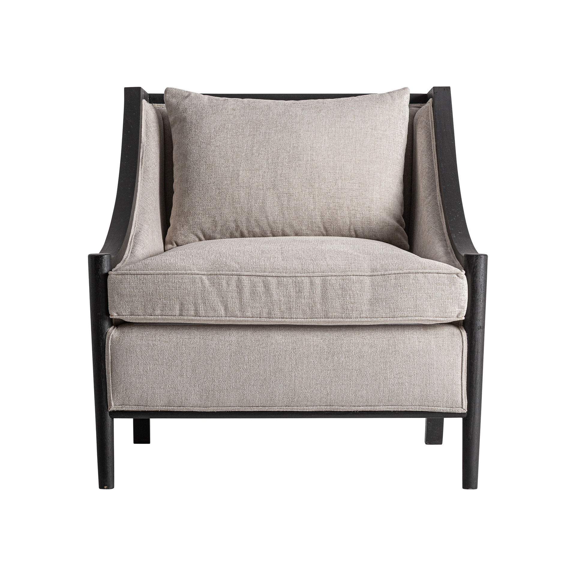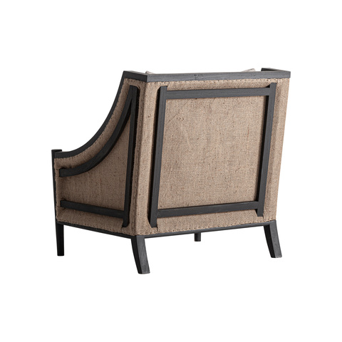 Кресло, изготовленное из льна в сочетании с коричневой древесиной минди и пенополиуретаном. Ширина: 81 см, Глубина: 78 см, Высота: 83 см