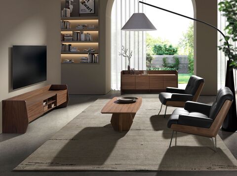 Кресло с подлокотниками современного дизайна, сиденье и спинка обиты черной кожзаменителем. Благодаря деталям из натурального орехового шпона и черным ножкам из нержавеющей стали это кресло представляет собой идеальное сочетание дизайна и комфорта.