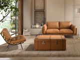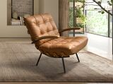 Кресло 5153 из коричневой кожи с подлокотниками из ясеня