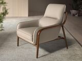 Кресло с подлокотниками современного дизайна, сиденье и спинка обиты натуральной кожей цвета норки. Благодаря своему стилю и деревянным ножкам цвета ореха, это кресло идеально сочетает в себе дизайн и комфорт.