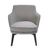 Кресло А141 от дизайнеров фабрики Angel Cerda — не выходящие из моды «гусиные лапки» для создания уютного городского интерьера. Кресло буквально очаровывает своим домашним внешним видом. От тканевой обивки веет теплом и уютом. Ее орнамент выглядит стильно и современно. Черно-белая цветовая гамма — грамотное дизайнерское решение, которое гарантирует изделию отличное сочетание с другими предметами мебели. И наконец, выступающая вперед мягкая подушка — центральный элемент модели, безусловно убеждающий в мягкости и комфорте. Кресло имеет традиционную форму, которая зародилась в Европе еще в середине прошлого столетия. Широкая спинка, плавно переходящая в высокие подлокотники, обрамляет вместительное сиденье, на котором расположилась впечатляющих размеров подушка. Используемый синтетический наполнитель прекрасно держит форму, не вызывает аллергии. Спереди изделие полностью обито износоустойчивым текстилем, который неприхотлив к условиям эксплуатации. Сзади кресло обшито коричневой экокожей. Ножки сделаны из металла и покрыты черной эпоксидной краской для защиты от негативных внешних воздействий. Они симметрично расставлены под небольшим углом для увеличения площади опоры. Размеры — 75 см х 75 см х 82 см (ширина, глубина, высота). Вес изделия составляет 21 кг. Ткань - Similar Balenciaga 07 - Similar Acua 23.