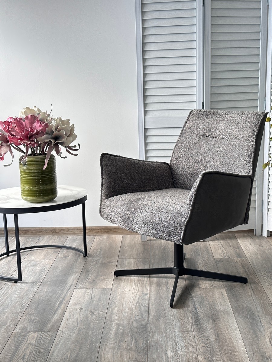 Кресло БЕЛФАСТ (BELFAST) 360 град. XD841-16 Серый, букле/ GINO-457 Серый, ткань/ Черный, ®DISAUR