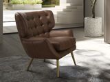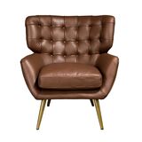 Кресло Chester с подлокотниками современного дизайна, сиденье и спинка обиты темно-коричневой воловьей кожей. Это кресло Chester представляет собой идеальное сочетание дизайна и комфорта, как благодаря своему стилю, так и полированным ножкам из нержавеющей стали золотистого цвета.