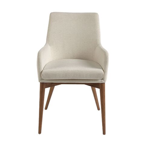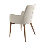 Кресло DC627-ARM — визуальная простота и лаконичность от фабрики Angel Cerda. Кресло по своему дизайну очень схоже со стулом. И именно этим оно привлекает в первую очередь. Небольшие габариты и «стройность» здесь сочетаются с подлокотниками и отведенной назад спинкой. Модель не займет много пространства, она идеально впишется в небольшое помещение, выполненное в современном городском стиле. Изделие конструктивно состоит из двух частей — цельного каркаса, образующего спинку, подлокотники и сиденье, и опоры, объединяющей четыре ножки. Материал обивки — текстиль. Это современная ткань, которая долго сохраняет свой первоначальный вид при правильной эксплуатации (избегать прямого попадания солнечных лучей, не использовать для чистки абразивные вещества). В зависимости от выбранной модели, цвет текстиля может быть кремовым, белым или голубым. Синтетическим наполнителем смягчена вся конструкция, а на сиденье дополнительно предусмотрена подушка. Дополнительный комфорт обеспечивает удобный угол наклона спинки и высокие подлокотники. Ножки сделаны из натурального дерева (орех) и покрыты бесцветным лаком для защиты от негативных внешних воздействий. Они имеют традиционную конусообразную форму и поддерживают изделие с четырех углов, что гарантирует хорошую устойчивость. Вес изделия составляет 24 кг. Его габариты — 57 см х 64 см х 88 см (ширина, глубина, высота). Доставка осуществляется в разобранном виде. Ножки потребуется прикрутить самостоятельно. Ткань - Similar Sublim 02.