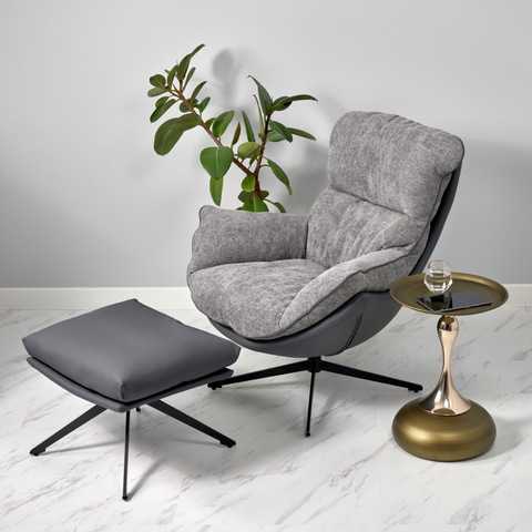 Вращающееся кресло Hug – воплощение комфорта, стиля и элегантности. Это идеальное решение для интерьера, выполненного в скандинавском стиле или стиле минимализм. Эксклюзивная комбинация материалов обивки из приятного на ощупь шенилла на лицевой части и экокожи на задней част придают оригинальность креслу и выделяют его среди других. Кресло Hug имеет эргономичную высокую спинку и состоит из двух мягких частей. Объемная мягкая внутренняя часть для максимального комфорта обита нежным шениллом, обеспечивая максимальный комфорт. Внешняя часть кресла обита прочной экокожей, а устойчивый металлический каркас делают кресло Hug идеальным для больших нагрузок. Кресло Hug - идеальный выбор для интерьера в скандинавском стиле, оно вращается на 360 градусов и может быть дополнено удобной оттоманкой для еще большего комфорта. Прочная металлическая ножка черного цвета и трендовые цвета обивки придают креслу элегантный и стильный вид, делая его идеальным акцентом для вашего дома. Дизайн кресла Hug продуман до мелочей, чтобы обеспечить вам максимальный комфорт и эстетическое удовольствие. Комфортное вращающееся лаунж-кресло Hug создано для комфортного отдыха. Кресло с высокой спинкой состоит из двух частей. Комбинированная обивка из темно-коричневого велюра на лицевой части и коричневой экокожи на задней части. Объемная мягкая внутренняя часть для максимального комфорта обита нежным шениллом. Каркас кресла обит прочной экокожей. Стильное металлическое основание, это позволяет ему без труда выдерживать большие нагрузки, ножки цвета светлого дерева. Кресло Hug - отличное дополнение для интерьера в скандинавском стиле. Лаундж-кресло вращается на 360 градусов, и для полного релакса советуем дополнить его удобной оттоманкой. Прочная металлическая ножка черного цвета и обивка в трендовых цветах придают креслу стильный и элегантный вид.